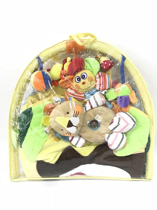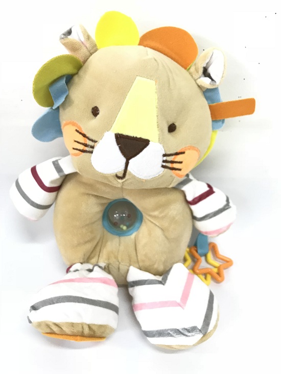 Material : softy 100% cotton + Filled with 100% PP cotton + 5pcs toys with noise+1pc lion toys.