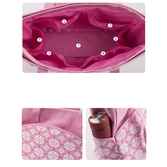The diaper bag opens and closed easily with the help of a cover with a double zip/ 2side pockets and 5front pockets(3pockets with a zip)/